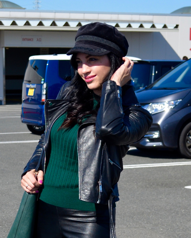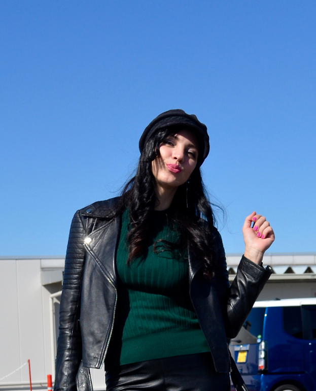В коже и зеленом супер образ ! Так стильно и роковая красотка) Пойду про Японию почитаю