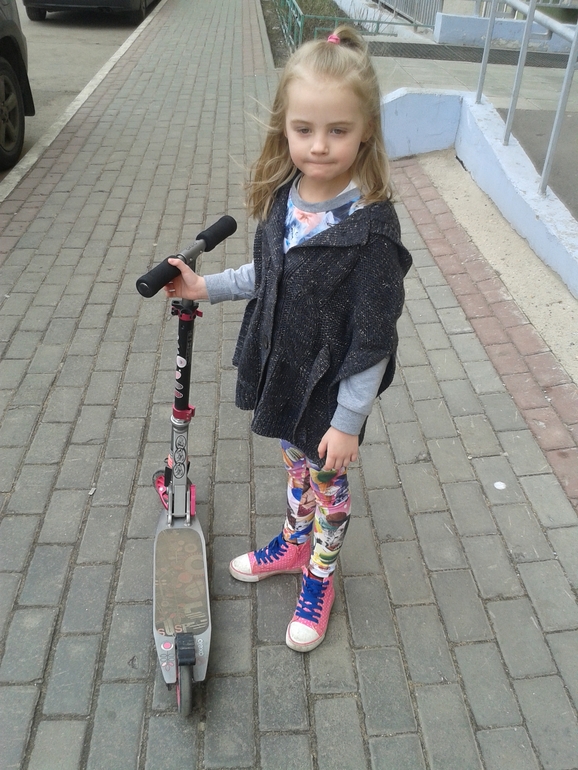 у нас тоже самокат оксело))) только у меня))) доча просто прелесть!!! у вас так тепло???? даже мы еще так не раздевались))))
