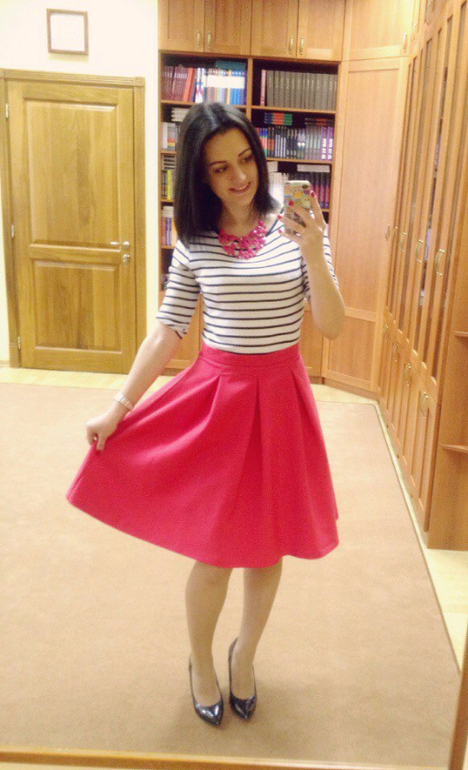 У меня красная карандаш и полосатый гольф. Погода не позволяет выгулять...