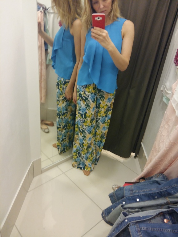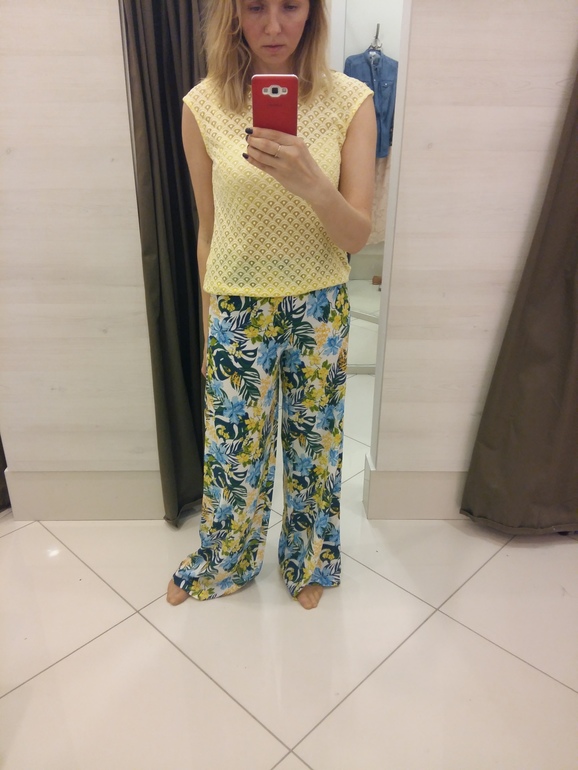 Брюки яркие, качественные сидят не мне хорошо Сочетать с чем угодно можно.