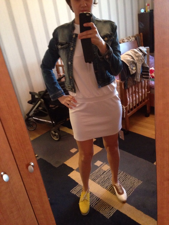 Я планировала носить его с джинсовой курткой. Вот так. (На обувь пока не смотрите :) )