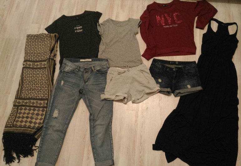 Джинсы и свитшот на случай прохладных вечеров, для самолетов и промежуточных остановок в менее теплых странах. Почему-то боюсь лететь без хотя бы одного теплого комплекта, хотя в прошлое путешествие по джинсы не понадобилось. А вот толстовку часто носила, особенно в супермаркетах часто прохладно.