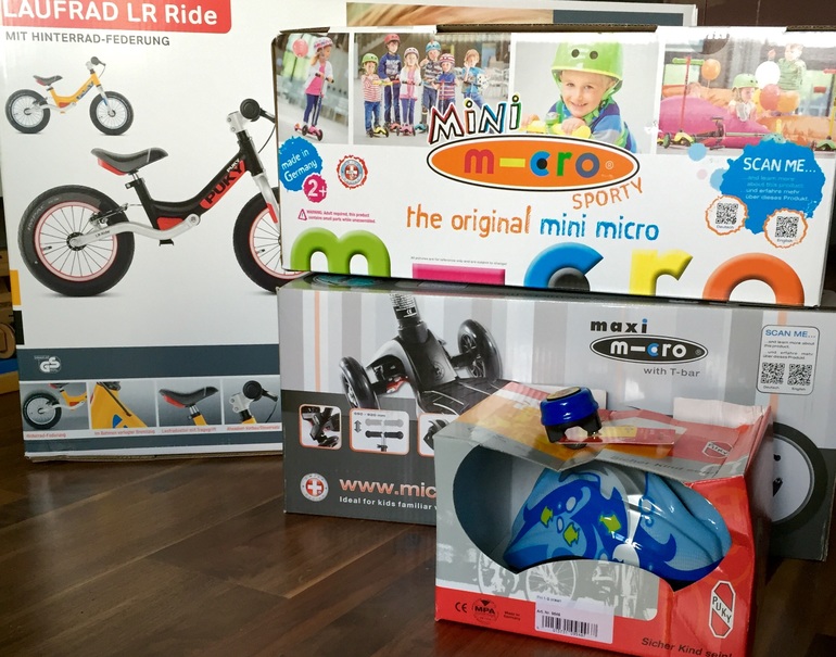 Отправляют из Германии dhl - у нас он превращается в почту россии (те забирать посылку нужно будет самостоятельно в почтовом отделении, это также стоит учесть, тк я, как оказалось, плохо себе представляла коробку в 13 кг, содержащую беговел, 2 самоката, шлем - в машину грузила с помощью отзывчивых прохожих, спасибо, что не отказались помочь).