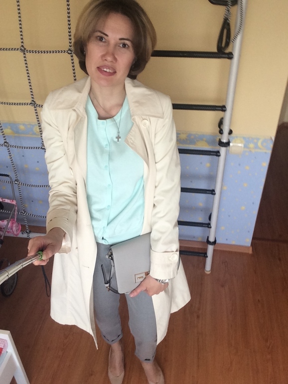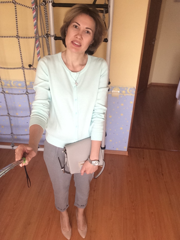 Очень классно выглядите! Такие спокойные тона, и мятный цвет свежести придает!