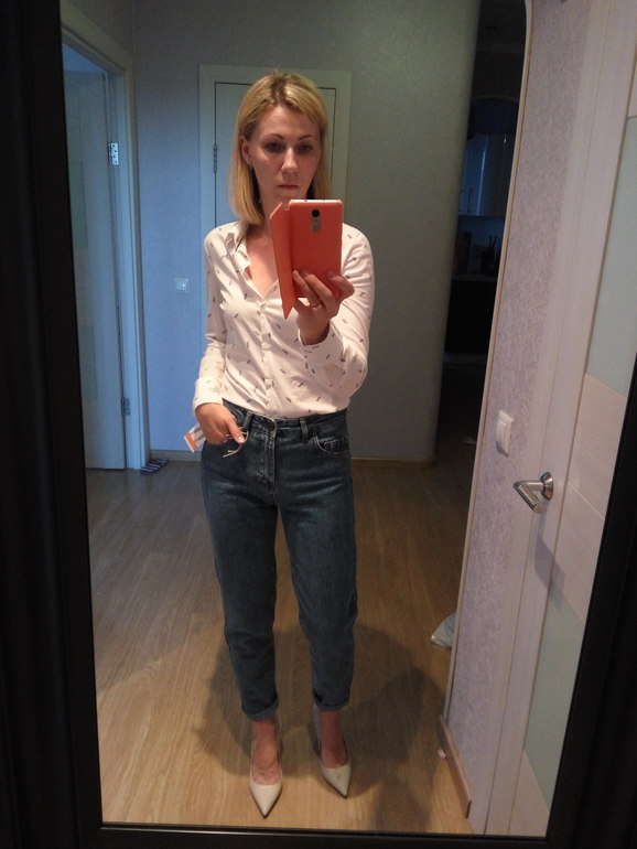 Джинсы страшные на поясе, платье делает из Вас девочку-переростка 15 лет.