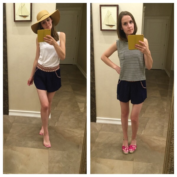 Комбез со шляпой и майкой полосатой понравился, еще шорты точно брать, остальное - я бы оставила. Черный топ к юбке какраз. Если смущает- то отметьте хоть фасон.
