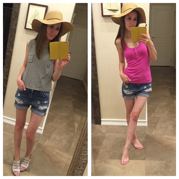А! По сумкам - там же в h&m была сумка-плетеная корзинка, с клетчатым подкладом, к шляпам идеально и на пляж ходить самое оно. А к лукам с шортами не хотите рюкзак посмотреть? В заре сегодня распродажа стартует))) у них ест розовые, желтые и серебристые)))
