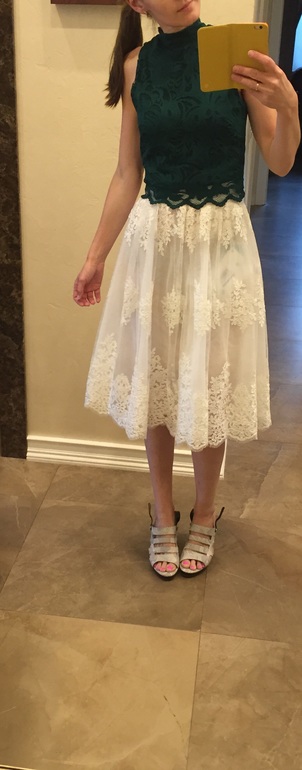 Если судить только по фото, кружевной топ к белой юбке идеален!!!