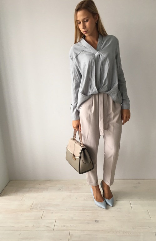 Решила примерить её со своими леггинсами под кожу от Massimodutti. Заправить её не выходит,так как у них низкая посадка.