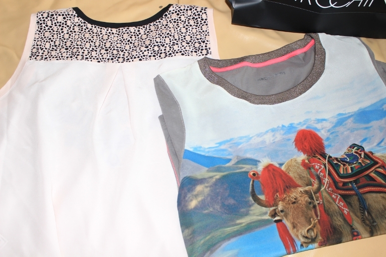 Шелковые топ и футболочка с бизоном) не хотела ,но подруга себе взяла и меня уговорила под джинсы очень хорошо,легкая и яркая,пусть будет))