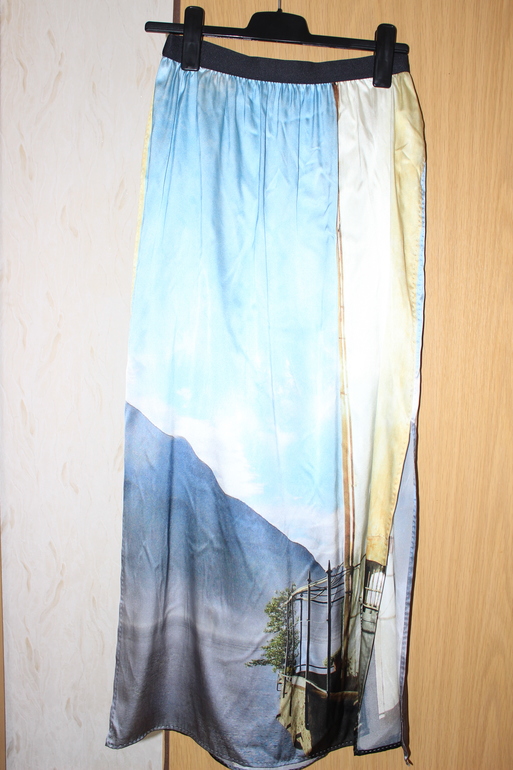 Голубую давно караулила,шелковая ,воздушная ,на море самое то ,вот думала легко подобрать будет верх,а нет,широкий не идет под такую модель ,как чайник))В обтяжку не ношу,цвета тоже либо голубой только или белый?На модели черный топ.