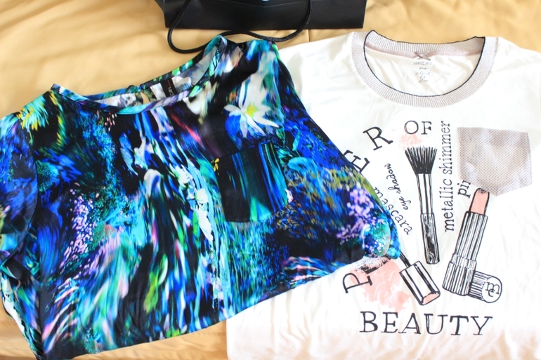 в Intimissimi и massimo dutti. Я прям конкретно шла смотреть, не люблю шибко долго ковыряться. В Intimissimi майки купила, на лето как раз, а то надо будет; скидос на них 30% был, небольшой, но караулить я уже точно не буду ) в Дутике расстроилась, майки, которые я показывала, почти все прозрачные до безобразия, но пару взяла более-менее, кофтень лососевую хапнула и шааааааарфик