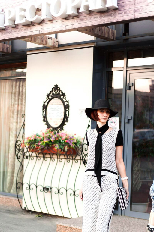 Самая стильная!Я же обещала, что надоем вам своими широкими брюками))) обещала - исполняю)). Костюм выглядит довольно эффектно - самое оно для посещения ресторана и променада по набережной. Набережной пока нет, она в планах, но ресторации имеются)))