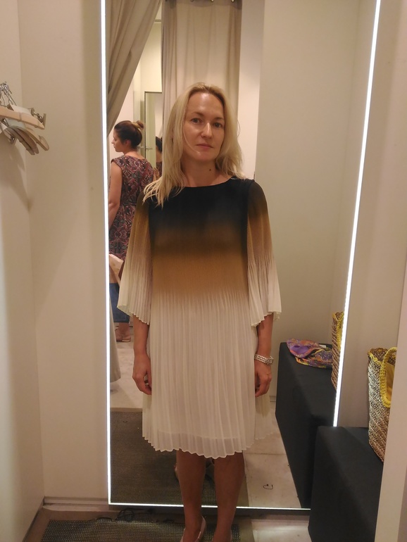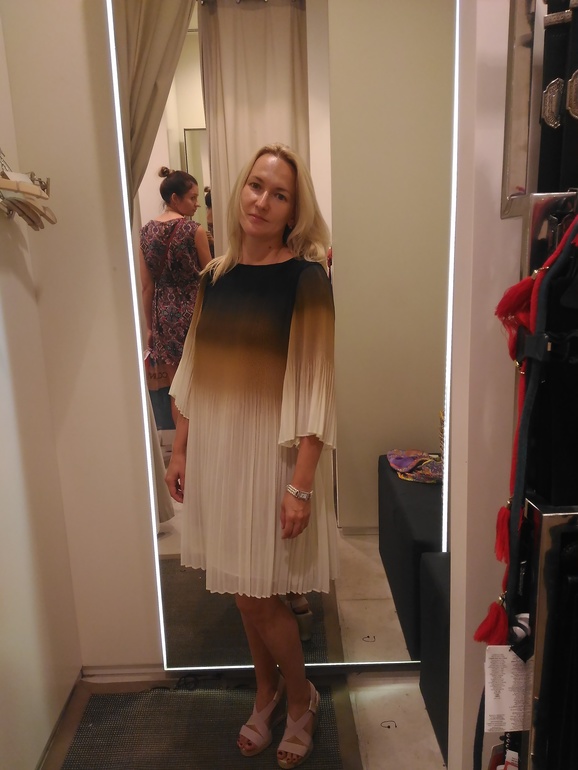 В этом платье мне не нра переход цветов и расклешонные рукава. Не красит вас, вы же стройная и юная)))))