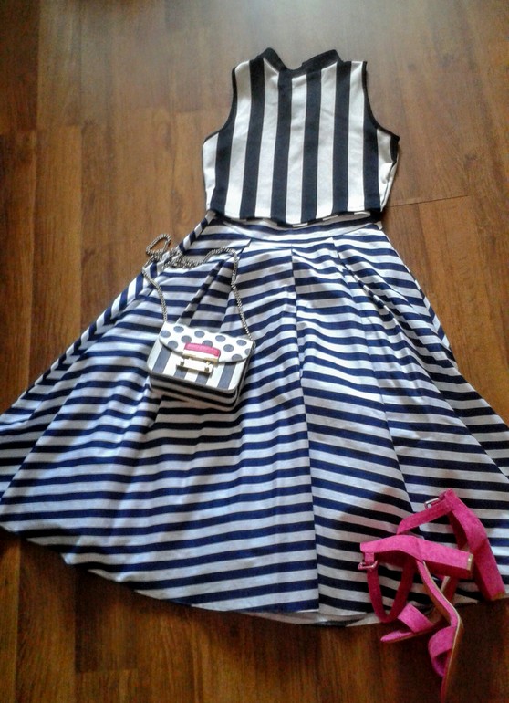 Юбка у меня прям очень на Вашу похожа ;)) Обожаю полоску! Это первое, что нашлось: