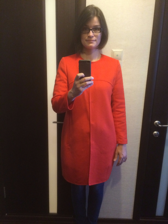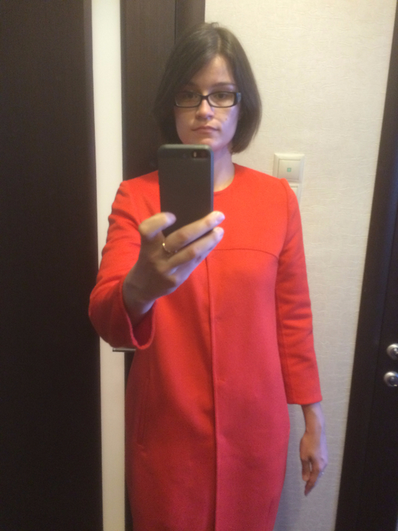 Цвет мне идет, в живую ярче чем на фото (последнее фото ближе всего по цвету, но тоже не до конца передает оттенок) . Посоветуйте, что лучше с ним сделать (ушить/перешить/укоротить рукав), какие аксы(перчатки, шарфик, обувь и какого цвета) или лучше продать.