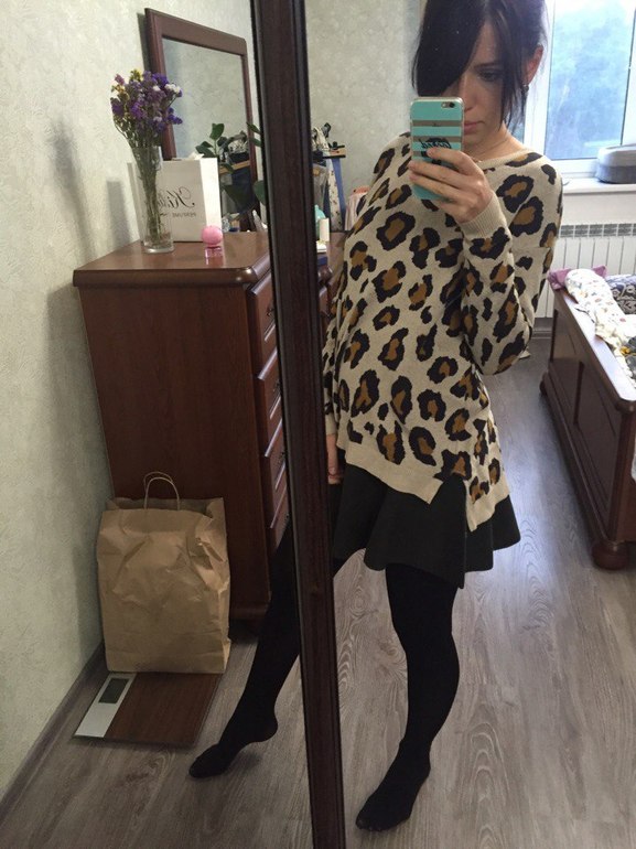 Принт вообще не мой😂 Но будучи беременной, эта кофта была моей любимой😝 Так в моем поселилась эта леопардовая вещь)))) спасибо😘