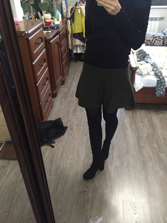 Не нравится фасон, он какой то Детский вроде как, фигуру он не красит, форм не подчёркивает. Ну а в сочетании со свитерами получается наряд как в детском саду, это лишь моё мнение и впечатление. У вас прекрасная фигура и можете себе позволить носить что угодно!!!!