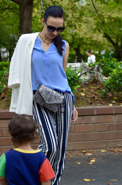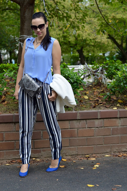 По отдельности вещи яркие хорошие,сумка вообще крутая,а вместе,извините,что-то намешано.серенити,темно-синий,кобальтово-синий.полоска и чешуя.может топ белый,в тон полоскам и сумку жесткой формы.