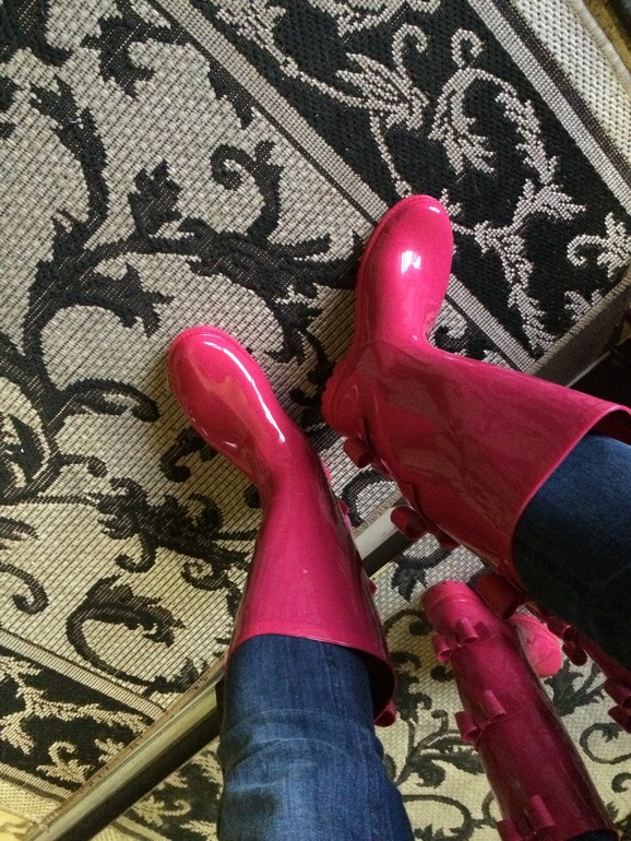 Ой, а у меня есть зонтик к вашим сапожкам)) Я как раз под него искала сапоги, но не нашла и в итоге взяла красные Хантеры.. Нравятся, но фуксию все равно хочу! Да еще с бантиками)))