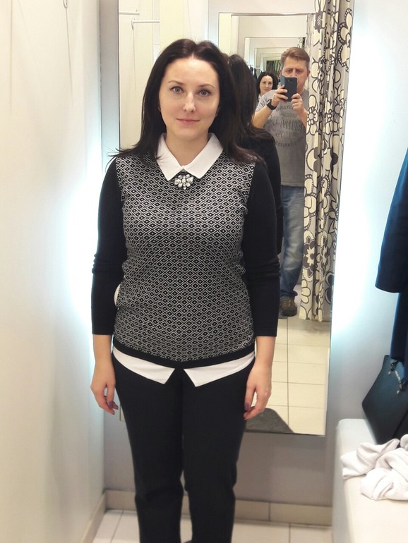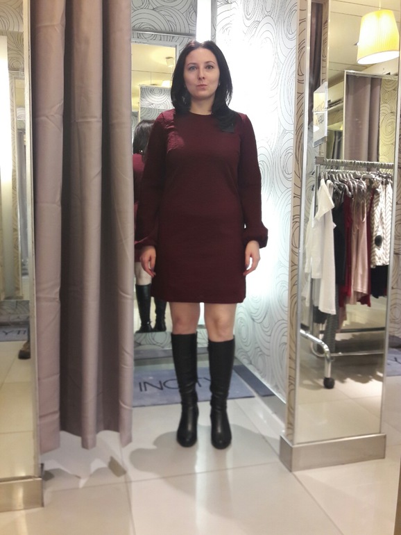 Последняя кофта села лучше всего, платье делает вас прямоугольной, попробуйте платье с талией, ну с пояском, А силуэта