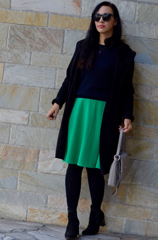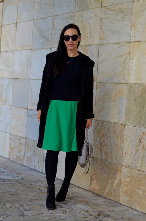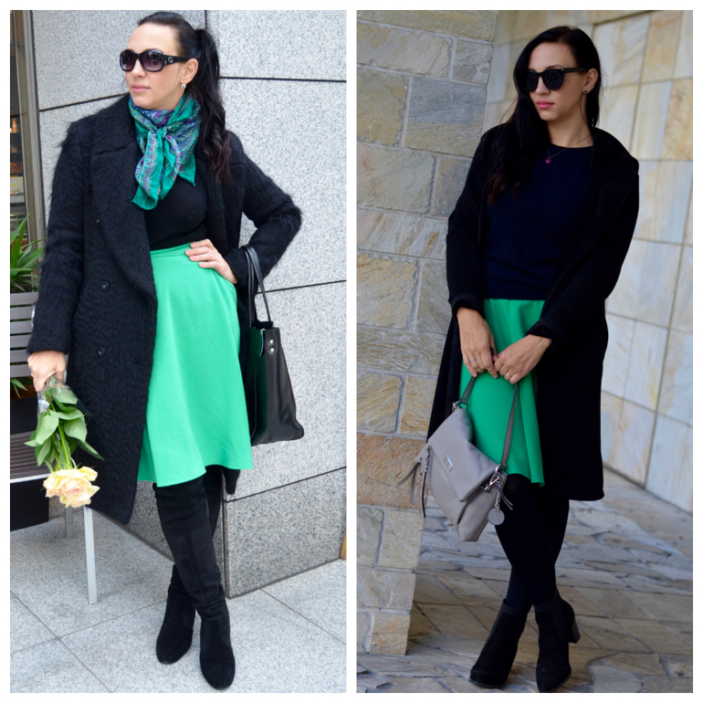 Лена, а мне юбка нравится! цвет такой сочный! Если бы был тотал блэк, то казалось бы совсем траурно, а с этой ярко-зеленой юбкой отлично!!!