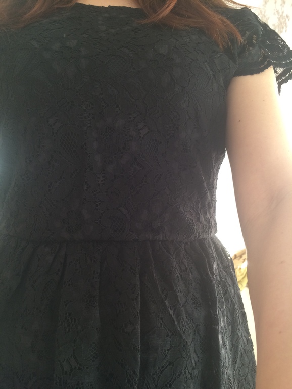 Самого платья и не видно, как на Вас смотрится тоже, но зато видно, что кружево не лучшего качества. Я бы сдала и поискала что-то другое. А кружево и яркие аксессуары - это вообще никак вместе...