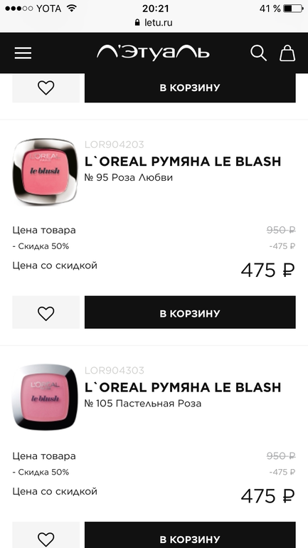 Я смотрела духи. Реально 50%, если сравнивать с ценами др магазинов. А тут натолкнулась на румяна и у меня возник вопрос... Я покупала у них эти румяна неск месяцев назад, но точно не взяла бы их за тысячу (пошла бы люкс смотреть), по-моему, со скидкой по карте меньше 400р они были.