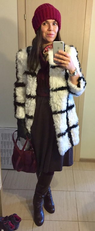 в 5утра прилетела, а в 9 уже надо было бежать на утренник в сад. собиралась наспех и на невыспих))