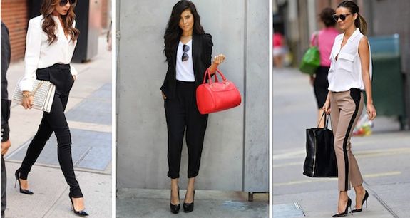 Все условно,зависит от времени года,от офиса,от фигуры и внешности)))вот вам картинки.юбка карандаш ,гольф,платье-водолазка,кюлоты,жилет,футляр,блузки,брюки какие-нибудь.зимой выбирайте трикотаж,кашемир,твид,принты гусиную лапку,полоску,клетку.летом можно внедрить в офисный стиль сафари или милитари в малых дозах.