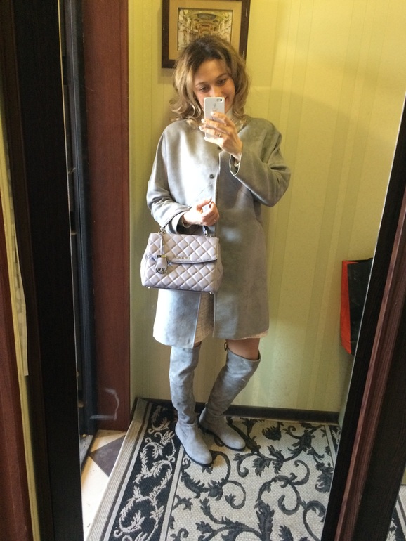 Ну и пальтишко подошло идеально (материал под замшу-как будто из одного комплекта с сапогами)