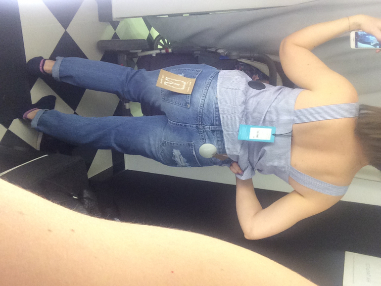 джинсы совсем нет, особенно на попе как-то некрасиво сели.