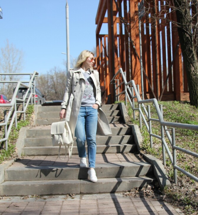 Длина у тренча отличная! я именно такую хочу! И рюкзак очень классный!