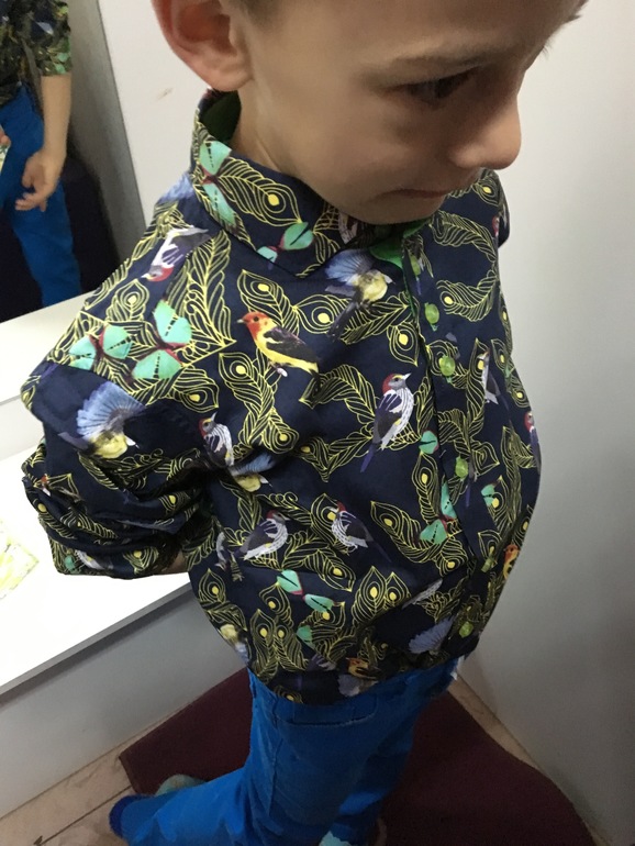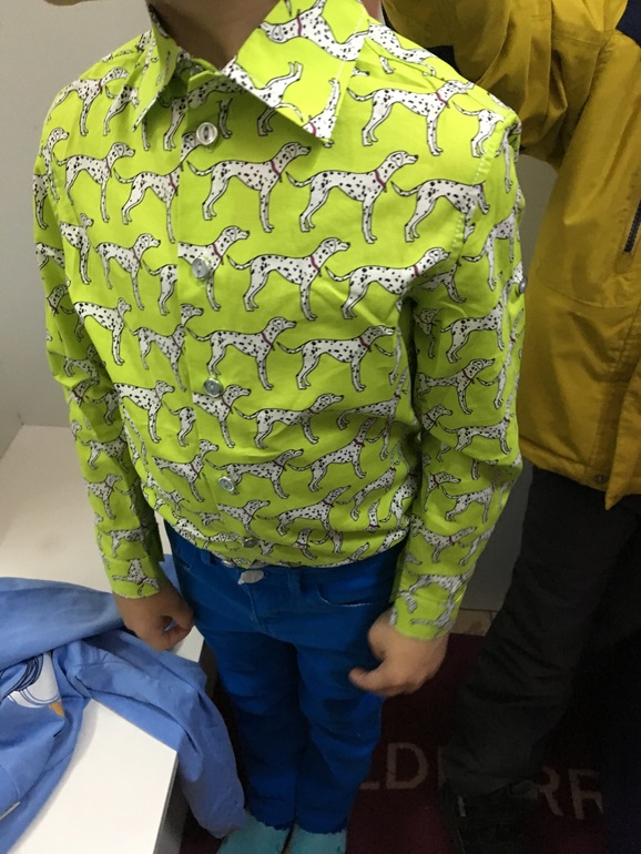 Да, соглашусь с девушкой, что рубашка с собачками и брюки - коротковатые в длину будут в тему)