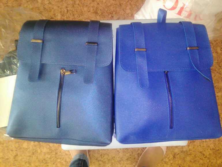 Обычный нормальный рюкзак. Я за яркий бордовый. Если синий, то левый, у правого оттенок какой то не очень.