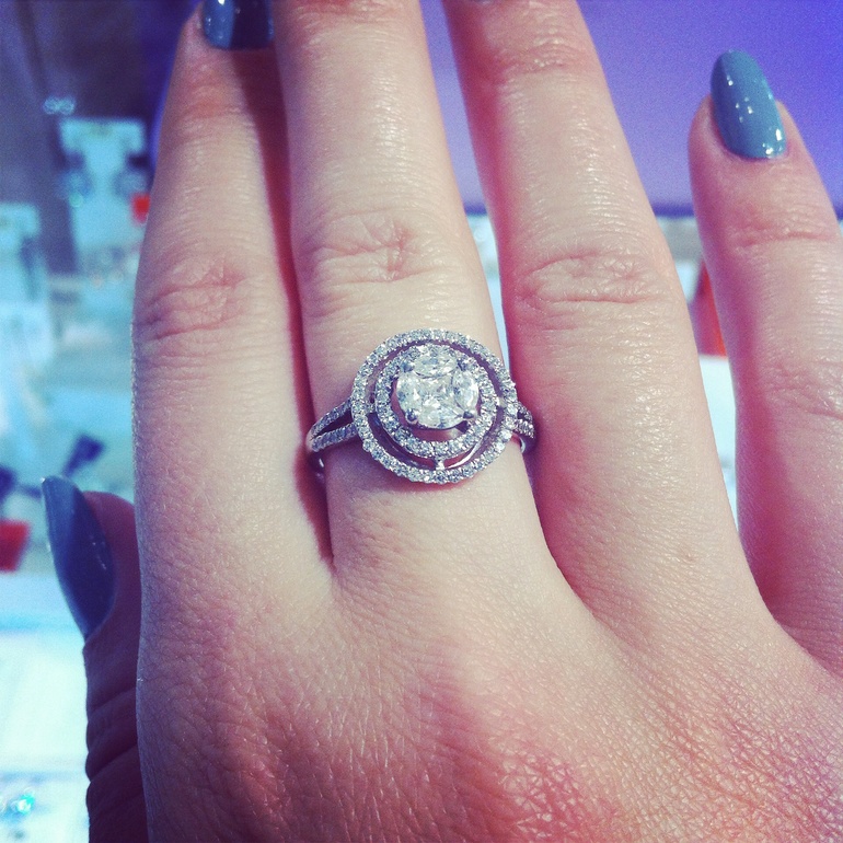 на обручальные кольца не обращала внимание , но компаний было много у которых были целые коллекции обручальных и помолвочных колец . народ толпился .