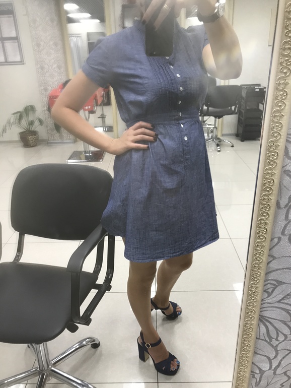 Cилуэт плохо виден из за руки с телефоном. Но из того, что видно, платье вам "съело" талию и прибавило живот а-ля 5мес беременности. Сидит как-то мешковато, несуразно, не знаю... Длина тоже не очень ИМХО.