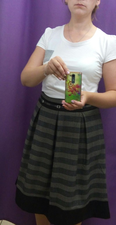 ПосоветуйтеДевочки-модницы,нужен ваш совет.Давно хотела такую юбку,сегодня случайно увидела в фамилии и купила,отменное качество,на подкладе.Теперь не могу подобрать верх.Понимаю,что нужно в обтяг и заправленный.Юбка коричневая.Цвет верха?Желтый,беж,белый?И еще вопрос-не противопоказана ли такая юбка девушкам 48 размера как я?