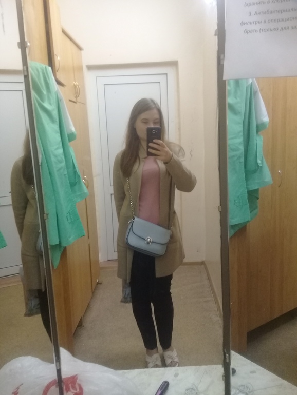 Не видела попытку номер один. Насколько понимаю, идёт разговор про образ с пальто. Во-первых, вы молодец, что начали рыть в этом направлении (в смысле что с чем). Во-вторых, вы супер-молодец, что начали обыгрывать образ аксессуарами. Тут хороший полицейский уходит и приходит злой. Но не очень. Сейчас цельный образ никак не складывается. Ощущение, что вы второпях похватали первые попавшиеся вещи из гардероба. И вроде по цвету они сочетаются, и по стилю, но так ровненько, безлико вышло. А все почему? Потому что нет в вашем образе никакого акцента, идеи и цели. Самый простой вариант: выкинуть платок, приколоть ярую брошь (красная - ок), а вместо розовой кофточки (она тут диссонирует ужасно) надеть топ а-ля тельняшка. Если розовая кофточка сопротивляется, то надо ее чем-то угомонить. Например, платком шарфом, снудом темно-синего цвета. Вообще хорошо, если на нем будет присутствовать цвет в тон к кофточке. Сумку эту на живот вешать не надо, только на плечо. Иначе пальто деформируется, не айс. А в конце хочу добавить, что если речь шла вовсе не про пальто, то очень извиняюсь))))))