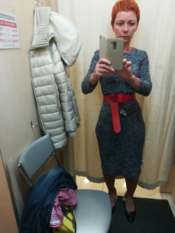 с красным поясом прям вообще не понравилось, оно не красит вашу фигуру.