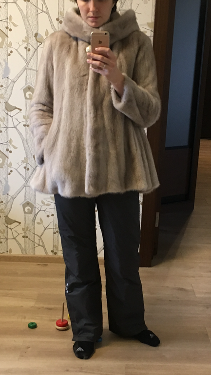 С шубкой такой длины ношу утеплённые брюки на флисе+высокие сапоги. Под брюки можно колготки или термолеггинсы.