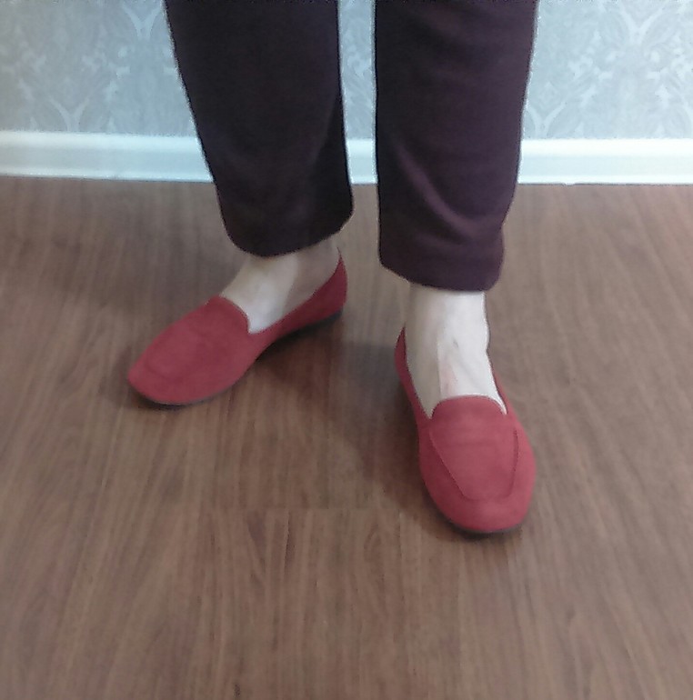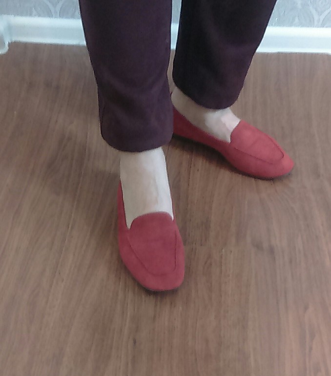 Кристина, все сдала... Ботильоны со скидкой почти 20 вышли, брала именно под брюки, но каблук для меня все же высокий ((( дома походила и решила, что не осилю... А мокасины тоже сдала - они красятся (( Вот такой epic fail)))