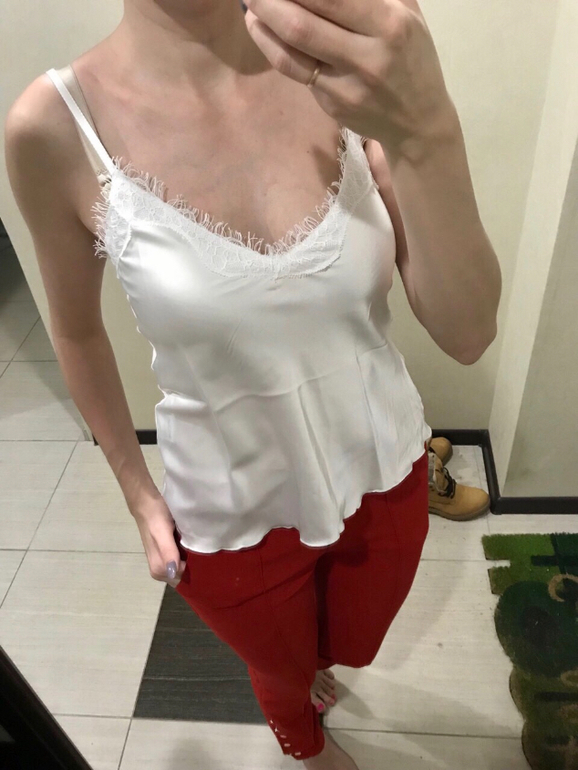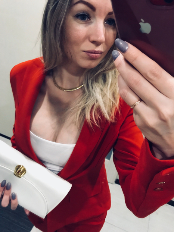 спасибо.Альтернативу не нашла шелковой майке.С красными туфлями образ выставила ниже.И пиджак не планирую снимать в течении вечера.