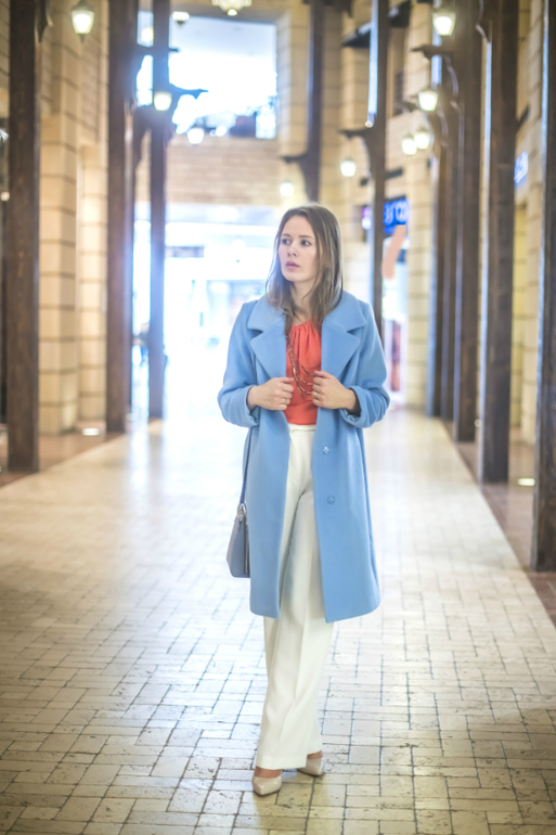 Мне нравится образ. Синий цвет очень хорошо. Единственное, смутили бусы, как то они очень дёшево выглядят... А где в ТЦ переодеваетесь для съёмки?
