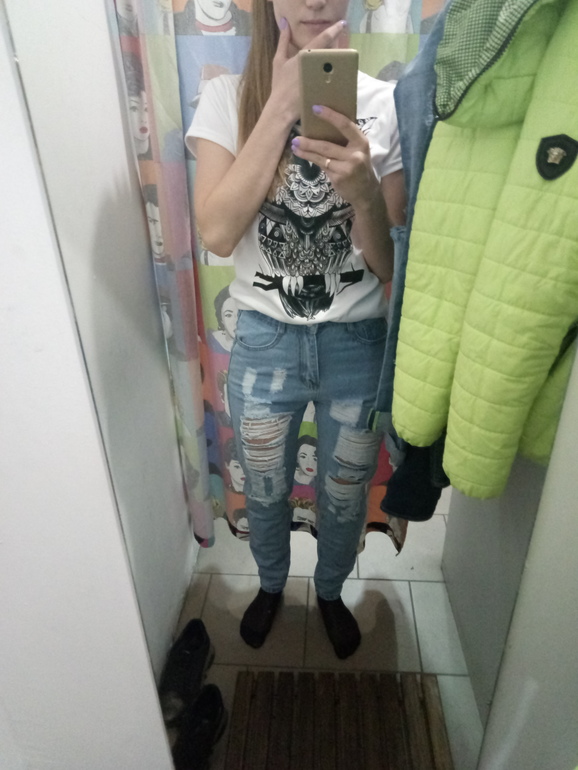 Ань, ты очень стройная, но по фото не очень понятно. Мне рванина вообще не нравится, это и плохой фэн-шуй))) предпоследнее фото вроде норм!