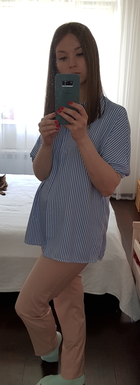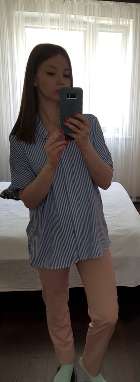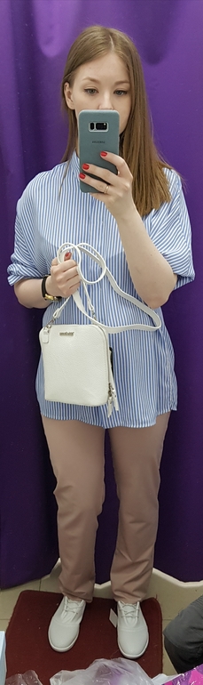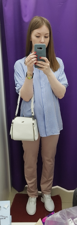 Добавила фотографии того, с чем хотела бы носить белые ботинки и сумку. Брюки уже с резинкой, а рубашка просто широкая. Брюки очень длинные, надо будет ушить, но пока нет обуви - просто подвернула. Нет ощущения медсестры из больницы?