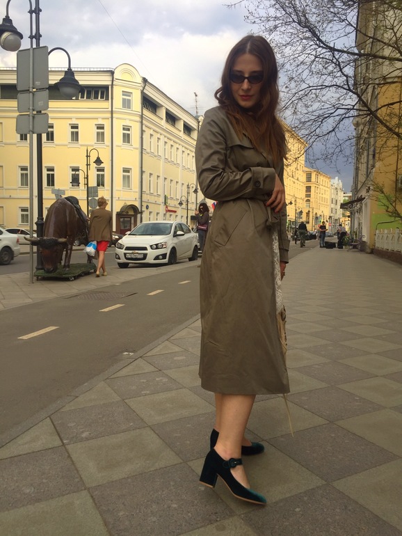 На прогулкеНа самом деле этот плащ я "стащила" у Ретуксы, но в итоге мне он очень идет, что даже муж каждый раз говорит😂 Плащ, кружева, узкие очки