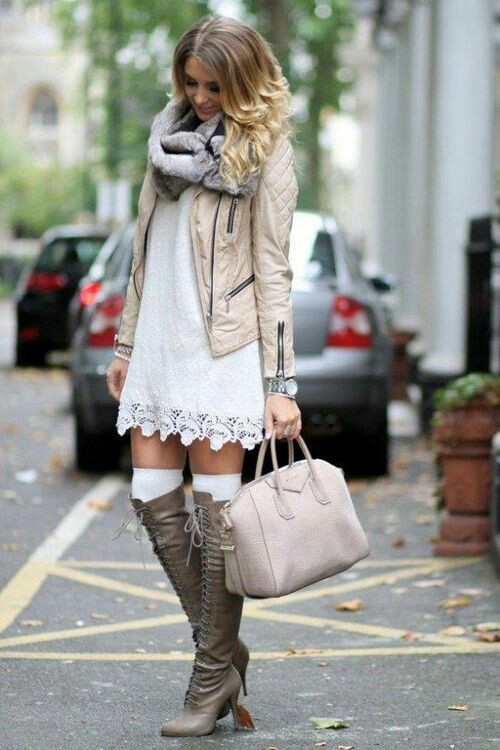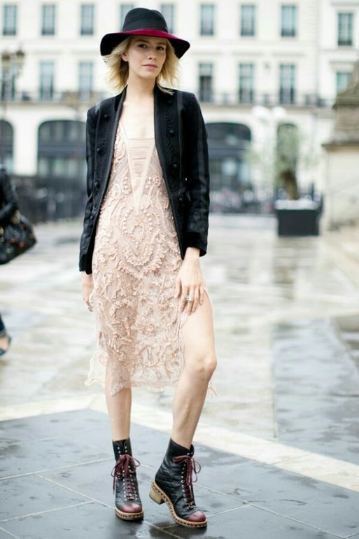Я вижу грандж или бохо стиль. грубые ботинки и курточку типа косухи. Без пояска. Без блестящих колгот. Либо сапоги типа казаков и объемная джинсовка мужского кроя...