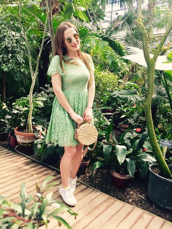 Самая стильная!А вы любите одеваться под окружающую обстановку? Я- да! Конечно, если это не цвет штор в каком-нибудь ресторане или обивка стульев:) сегодня ходили с подружкой смотреть на сакуру в Аптекарский огород, сакуру не нашли, но нашли много прекраснейших тюльпанов, сирени, деревья радовали глаз цветением. Я знала, что цвет молодой зелени там будет органично смотреться и надела это кружевное платье) кроссовки с котами здесь... ну потом что для туфель там слишком неровная щебенка и их можно легко испортить) муж сказал, что я на школьницу похожа