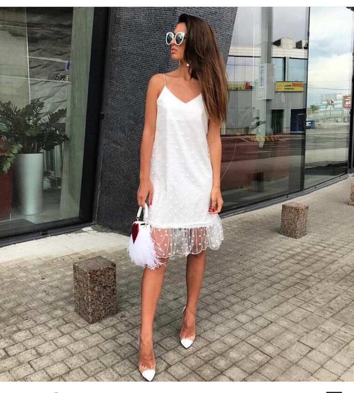 Симпатичное платье, но я что-то от туфлей оторваться не могу. Как в них ходить то?)